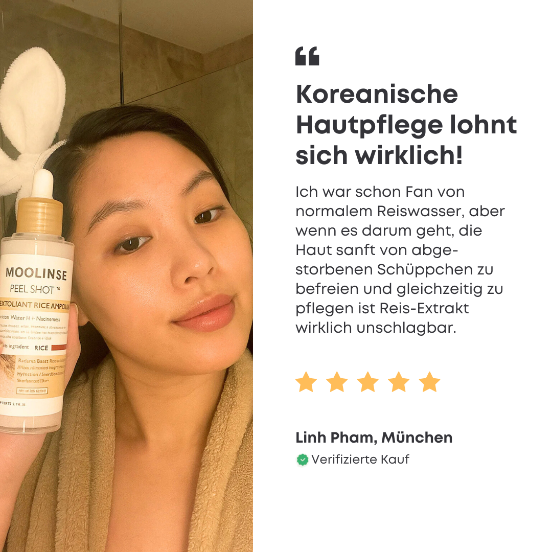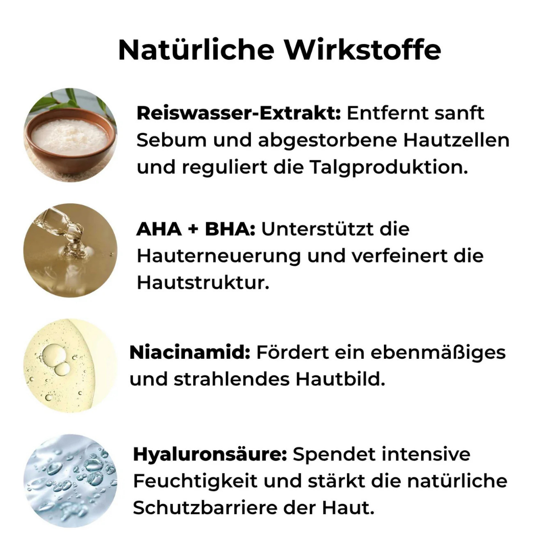 Entwickelt mit unserem Rice-Glow Complex™ als Basis – AHA, BHA und PHA in Kombination mit Niacinamid, Reiswasser und Pentavitin löst es sanft abgestorbene Hautzellen, klärt Poren und erhöht die Aufnahme nachfolgender Pflege. Das Ergebnis: glattere, widerstandsfähigere und sichtbar strahlende Haut.